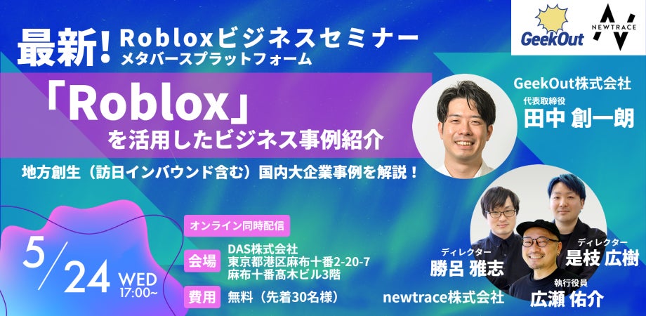 【セミナー共催のお知らせ】GeekOut株式会社が、newtrace株式会社と「Roblox」ビジネスセミナーを開催します。