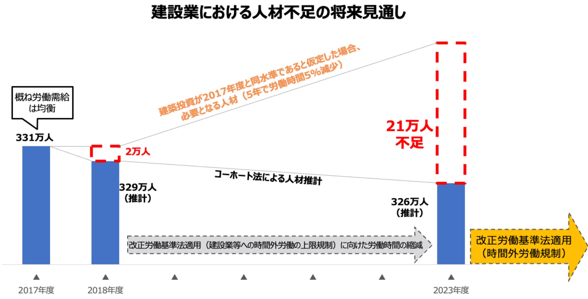 老朽化に伴う各種損傷の増加に伴い、今後ますます現場の負荷は増加していきます。2024年4月には建設業も改正労働基準法が適用され、時間外労働の上限規制が更に厳しくなります。