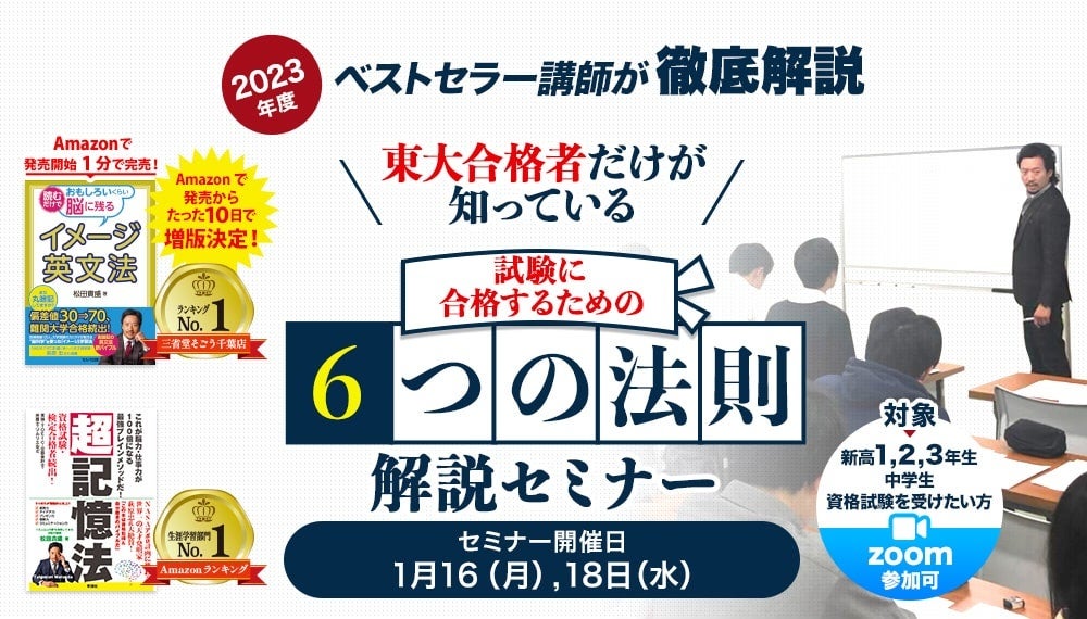 ベストセラー講師が解説。東大合格者だけが知っている!合格するための6つの法則セミナー。Zoom参加可!