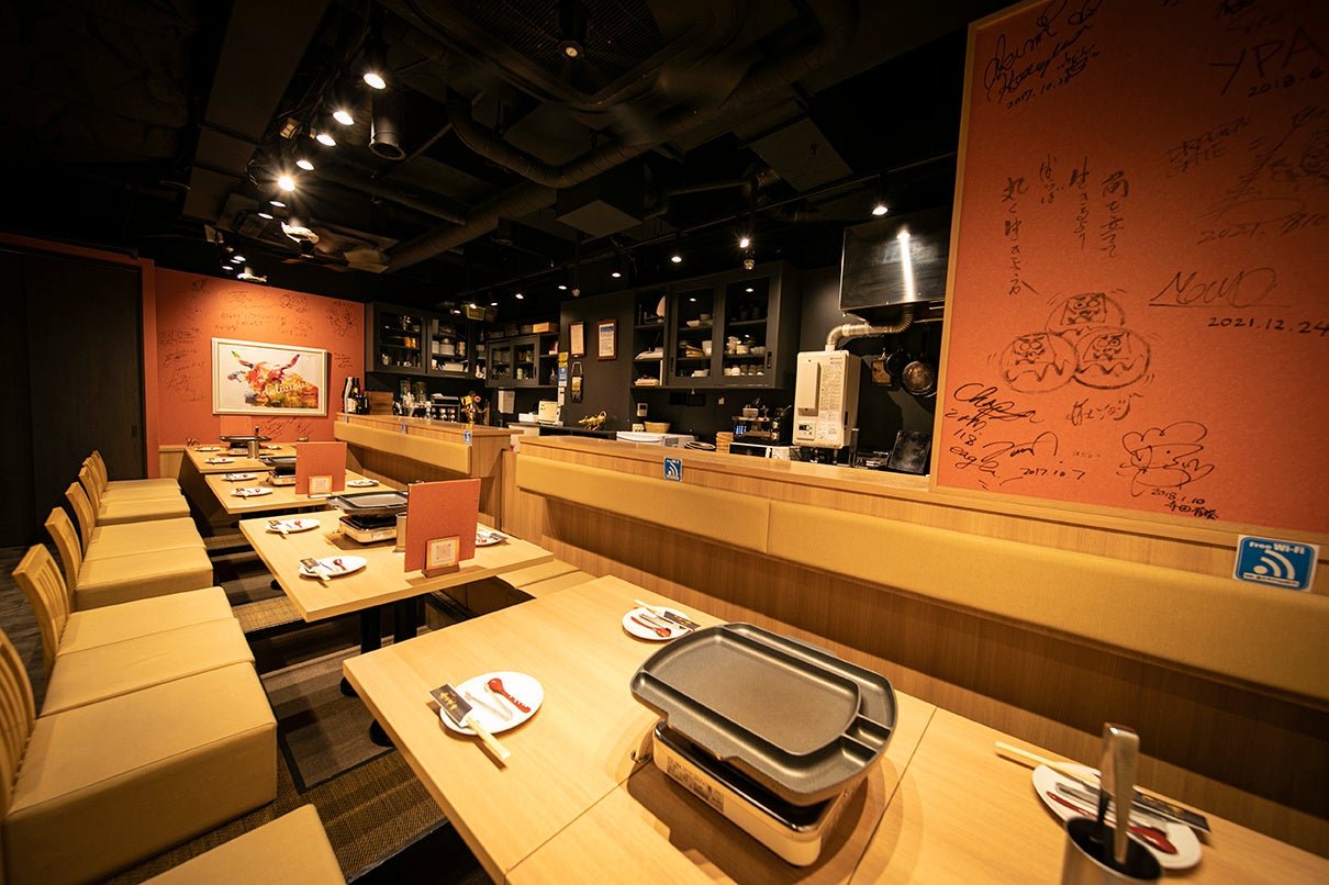 JR三ノ宮駅より徒歩1分~2分。グリーンシャポービルの地下飲食店街にある手巻き焼肉金の牛三宮店。