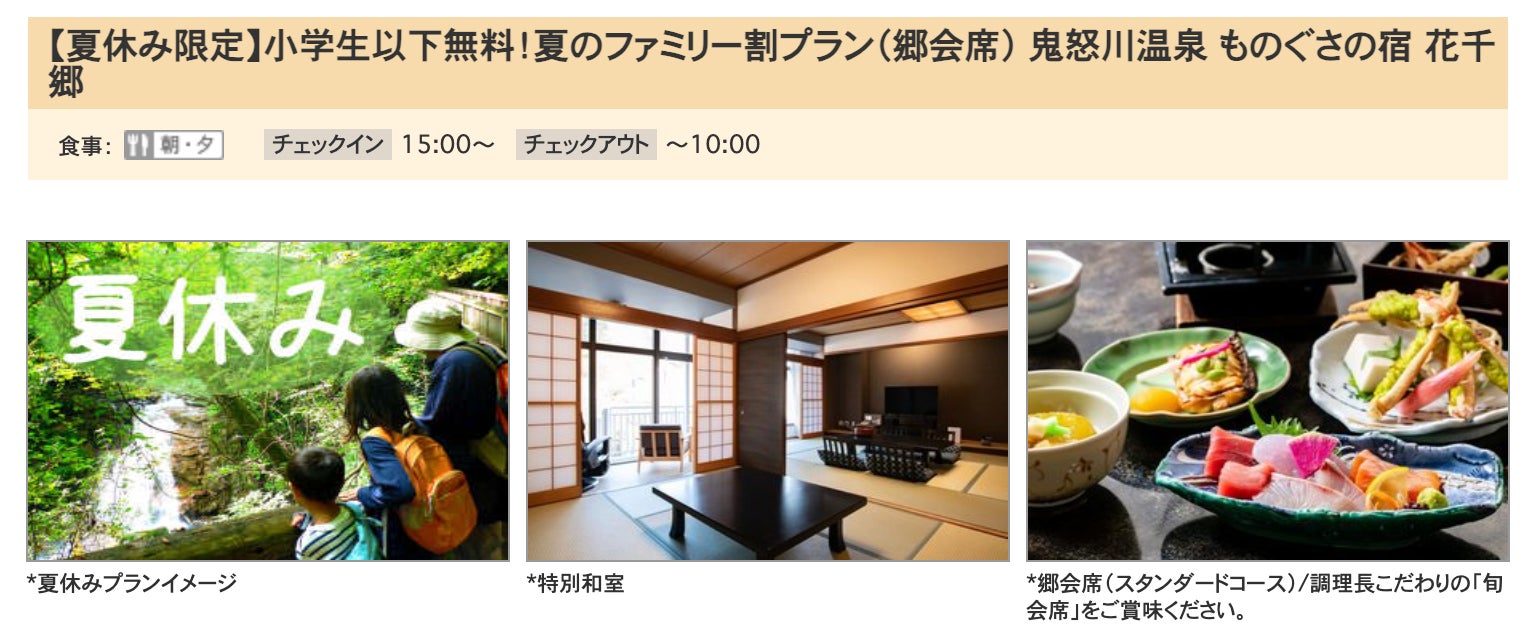 家族旅行応援するため、小学生以下無料のキッズプランを夏休み限定(土曜日を除く)でスタート!