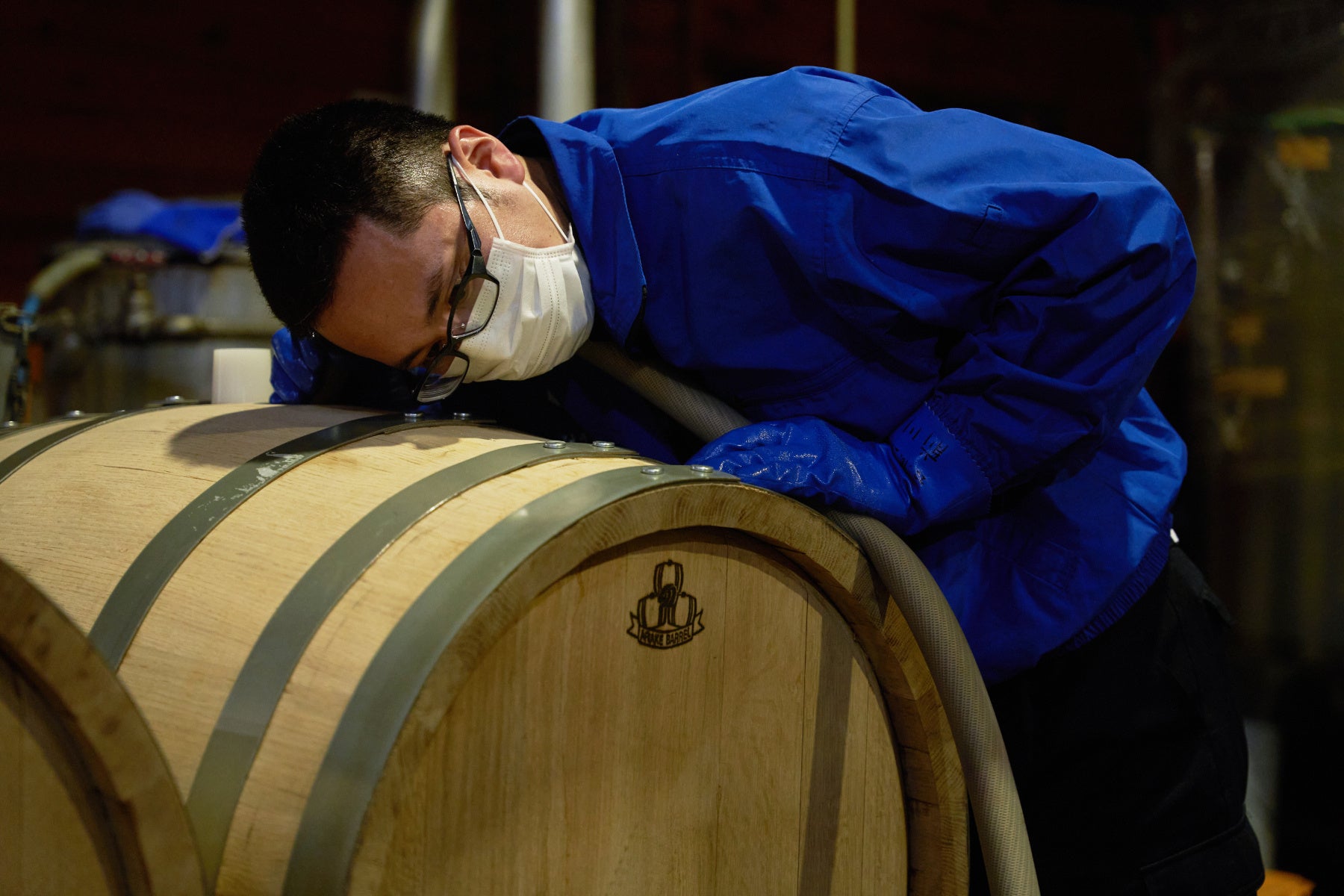 また、今回のワイン造りの大きな特徴として、樽の樹木成分による味や香りの違いを山梨大学ワイン科学研究センター・森林総合研究所と分析、共同研究をしながら進めています。