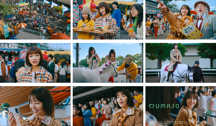 CM内では、フェス気分で楽しめる競馬場グルメ、おウマたちとのふれあいタイム、可愛いおウマモチーフのドリンクやスイーツなどで、ほっと一息つけるUMAJO SPOTも登場。UMAJO流の楽しみ方や競馬場の魅力をお伝えします。