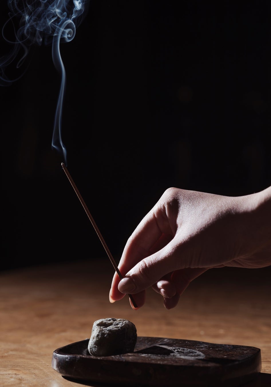香りに集中し、心身が満たされることで浄 化と癒しが促されることを意味していま す。 瞑想をするように心を落ち着かせ整えることをmedhyanaは目指します。