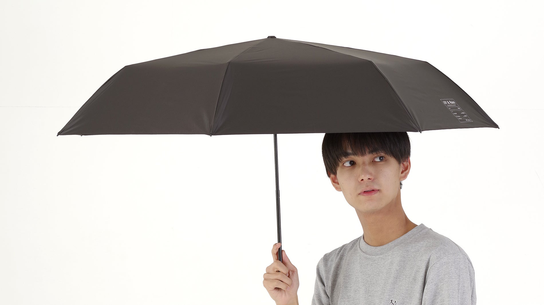 パーツ類は白と黒に統一してモノトーンに、ワンポイントプリントも生地の性能や数値を入れただけの無機質なデザインにし、主張しすぎない、誰にでもちょうど良く使ってもらえる日傘を目指しています。