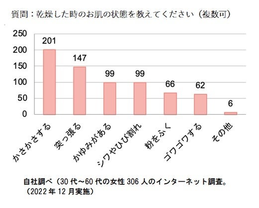 肌が乾燥するとトラブルが起きやすく、肌のかさつきだけでなく、肌荒れや表情が暗く見えるなどの肌悩みの一因ともなります。