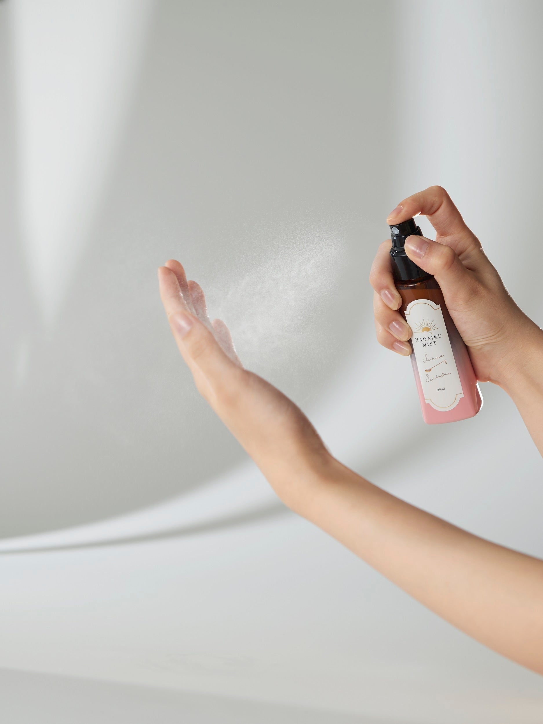 そこで、「素直生活」では、日中のオフィスワークや家事の合間にメイクの上から肌の水分バランスケアができる「肌育ミスト」を開発しました。シュッと吹きかけることで、時短で気軽に保湿ができます。