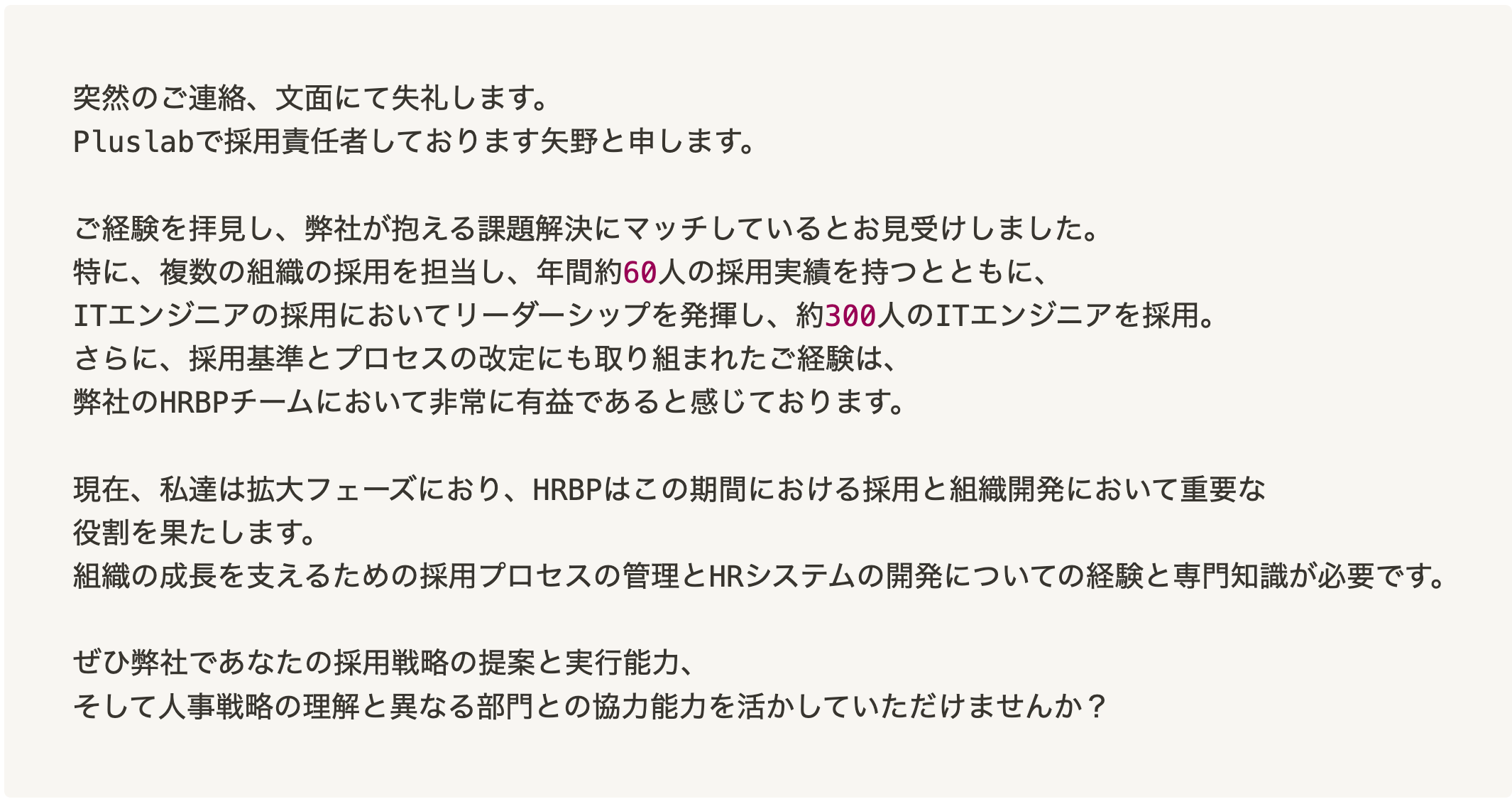 - 自分でスカウトをカスタマイズして送りたいが、スカウト対象領域の専門知識がなくスカウトをカスタマイズできない