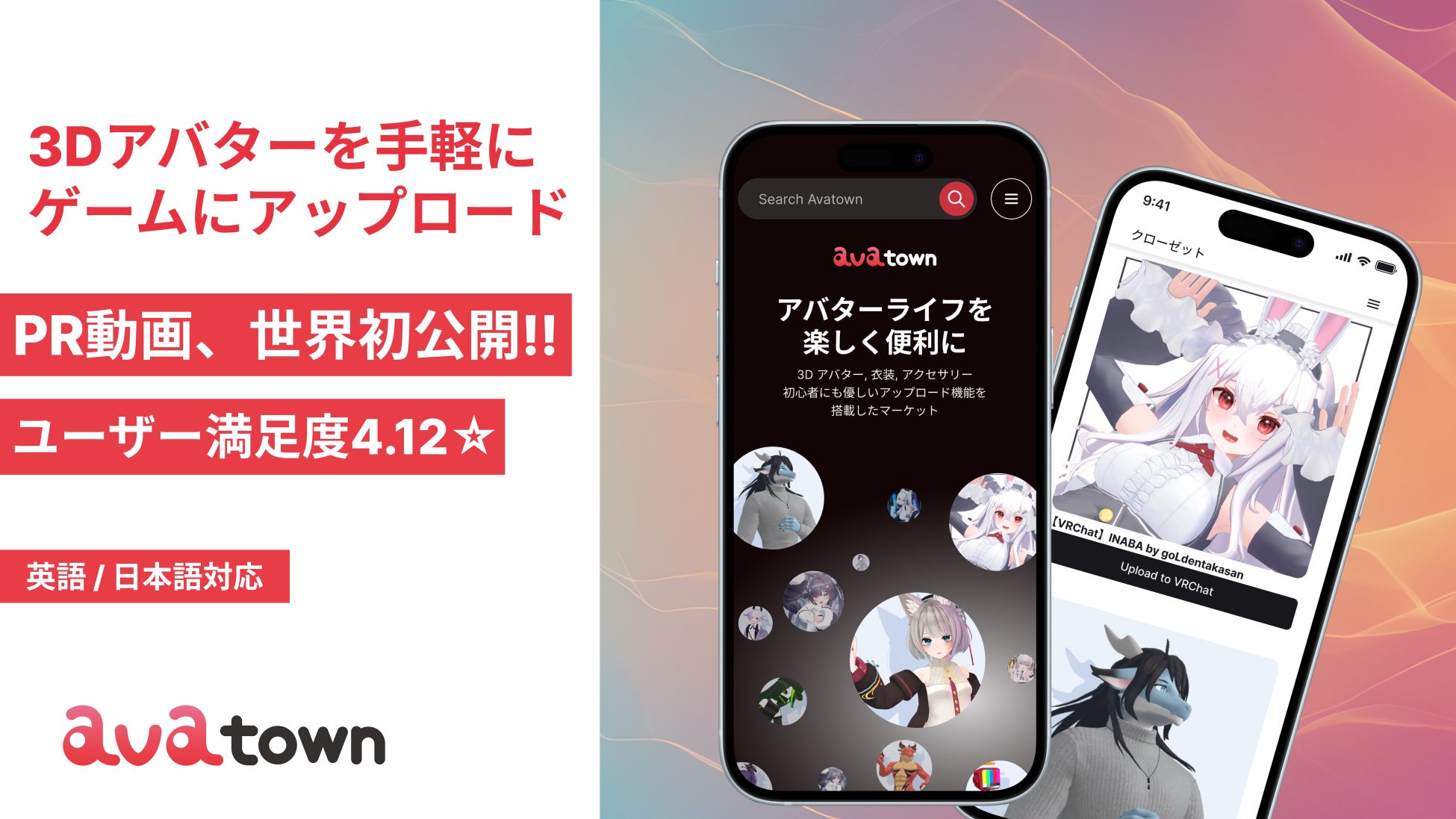 Avatownは、これまでハードルの高かった3Dアバターの利用を一般の人でも簡単に楽しめるように、自分のアバターのベースや衣装を購入できるマーケットプレイスの機能と、自分の好きなアバターをゲームにアップロードできるアップロード機能を備えた、アバター利用のための総合プラットフォームです。