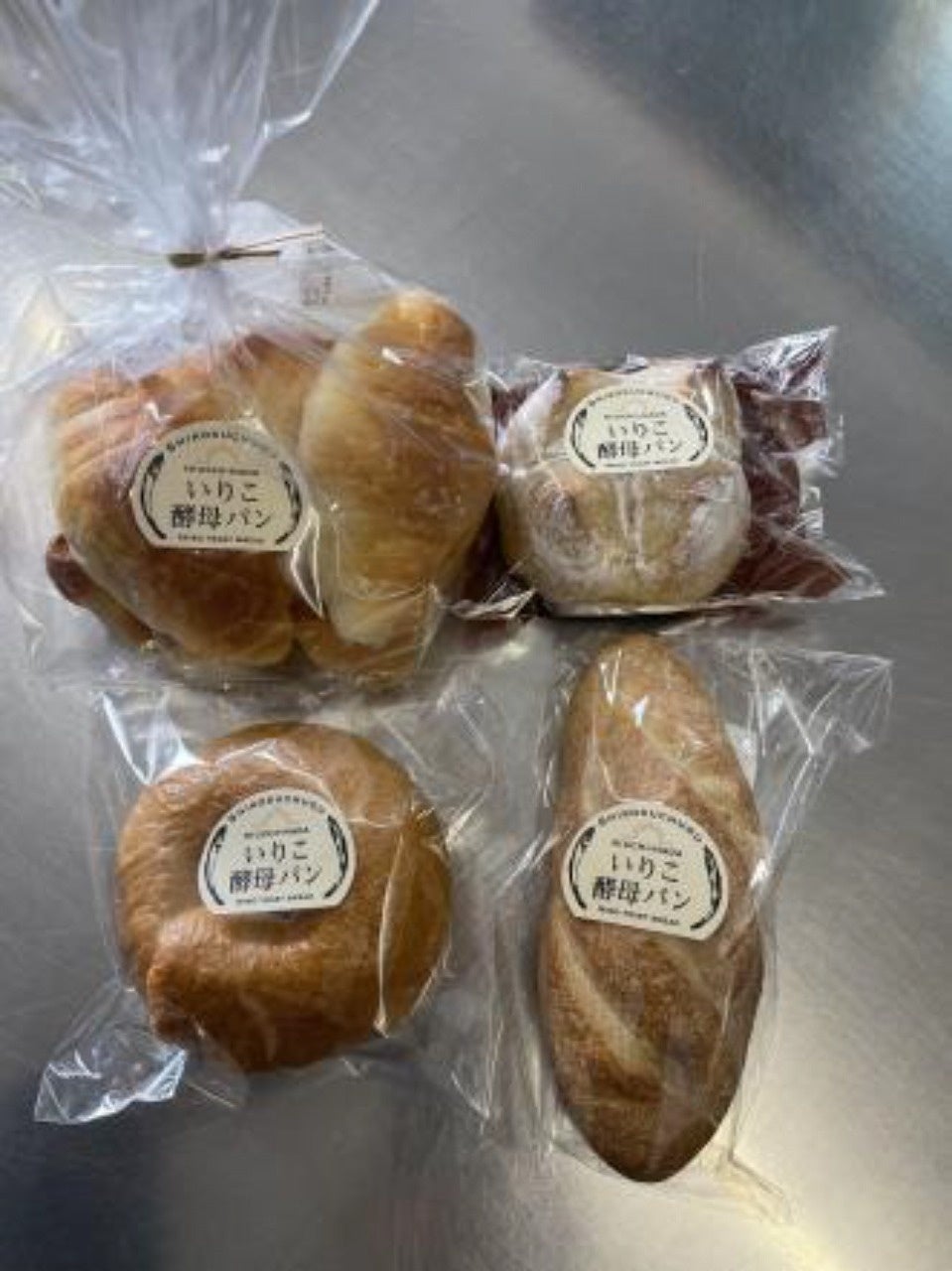 2023年1月より販売してまいりました「いりこ酵母パン」ですが、おかげさまで大変多くの方にご興味をお持ちいただき、現在はいりこ酵母ソフトフランス(200円)、いりこ酵母ライ麦パン(230円)、いりこ酵母ベーグル(230円)、いりこ酵母塩パン(5個入り・300円)の全4種類をラインナップしお届けするようになりました。