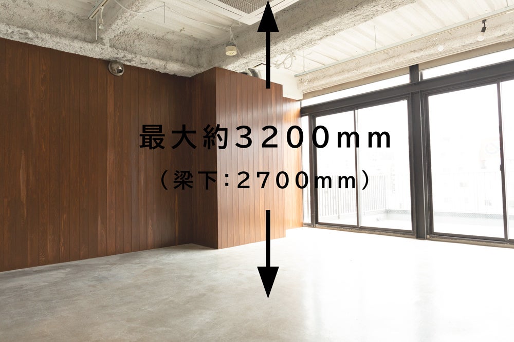 天井高さは最大約3200mm(梁下:2700mm)であり、広々とした空間での撮影環境を提供します。