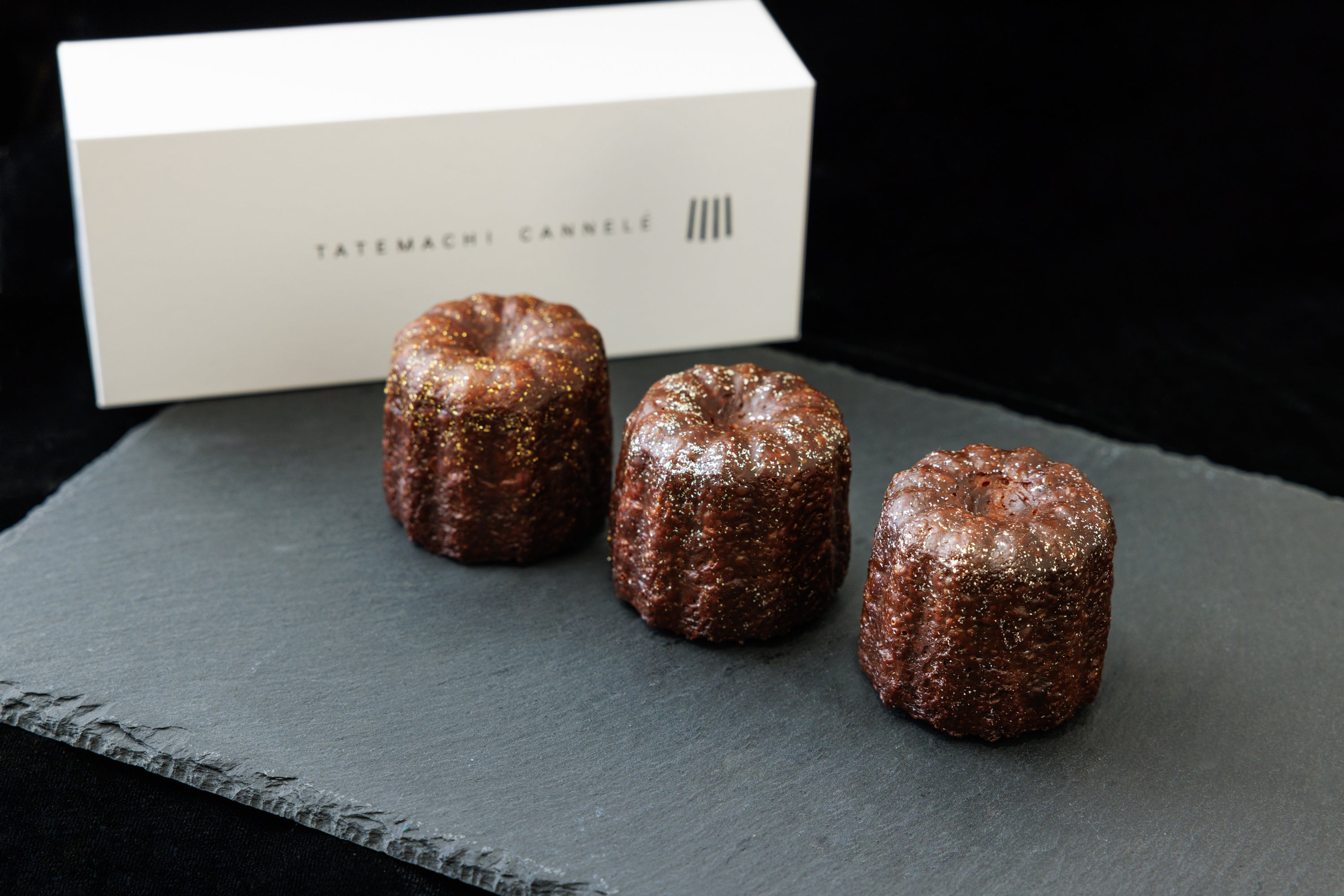 左から、ブランデー・チェリーカヌレ、日本酒・レーズンカヌレ、ラム・デーツカヌレ