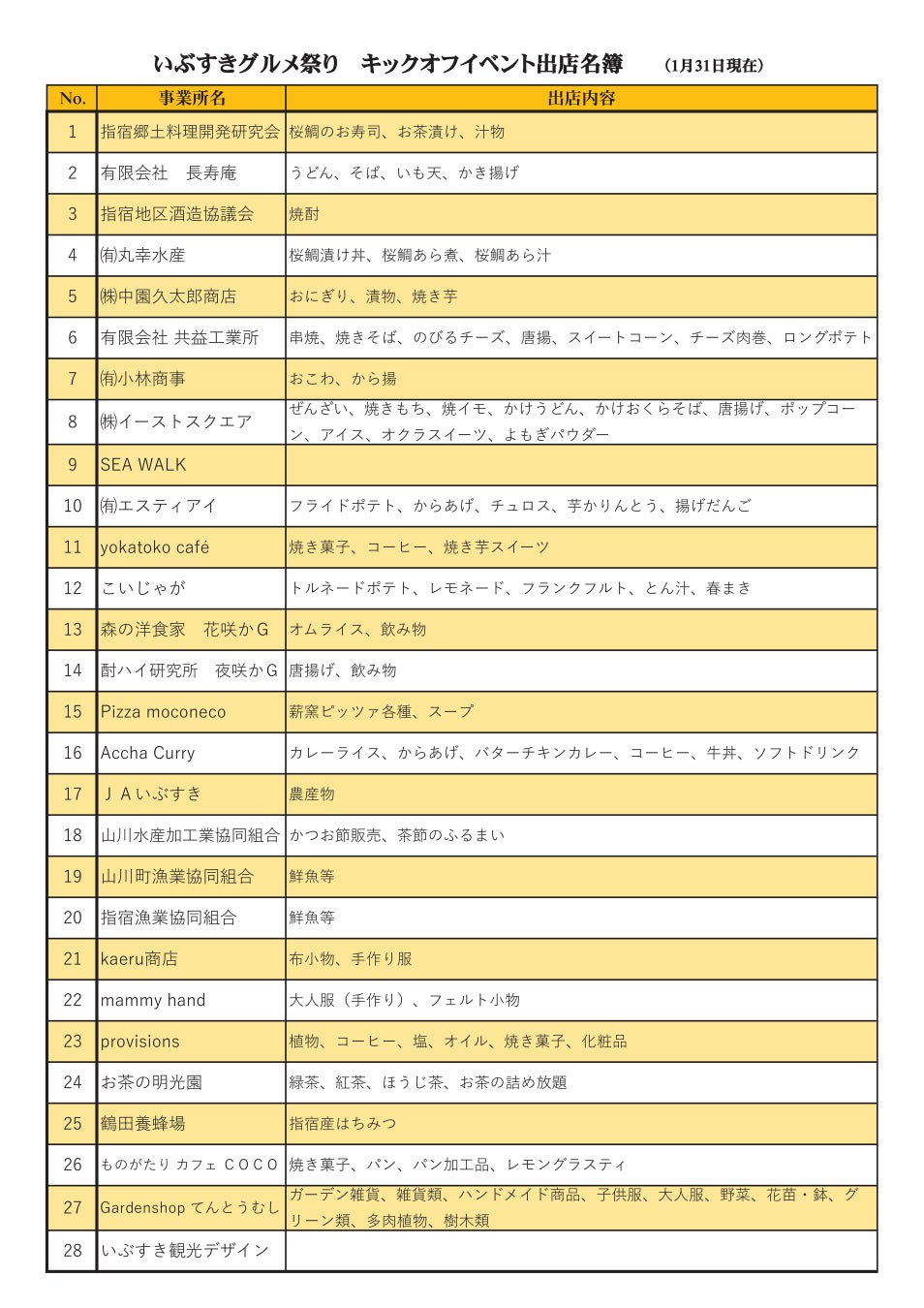 ■主 催 者 : いぶすきグルメ祭り実行委員会 事務局 指宿商工会議所
