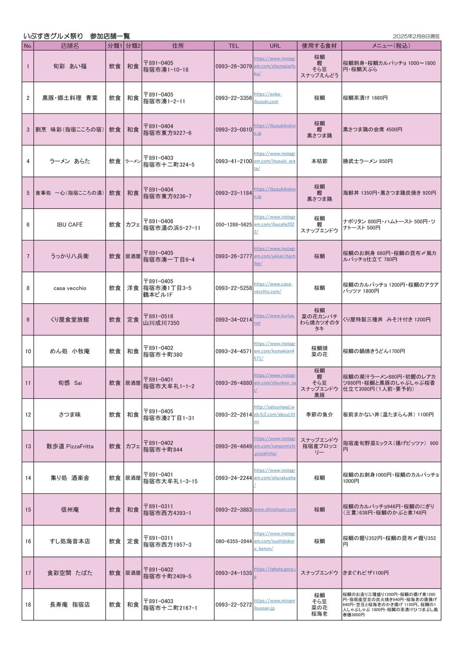 参加店舗一覧(2月8日現在)