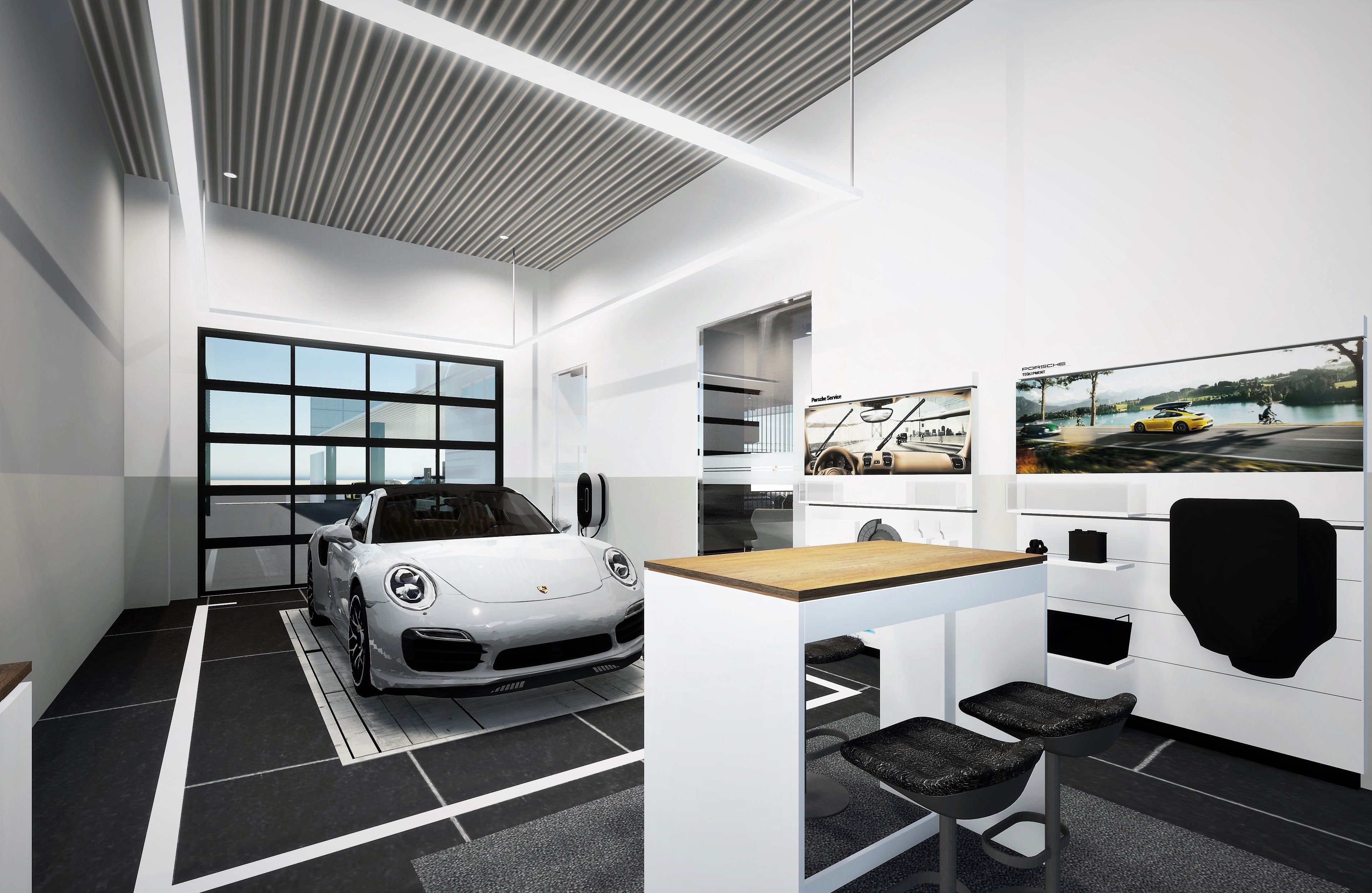急速充電器ポルシェターボチャージャー*1基を備え、さらに最新設備の整備工場も併設しています。