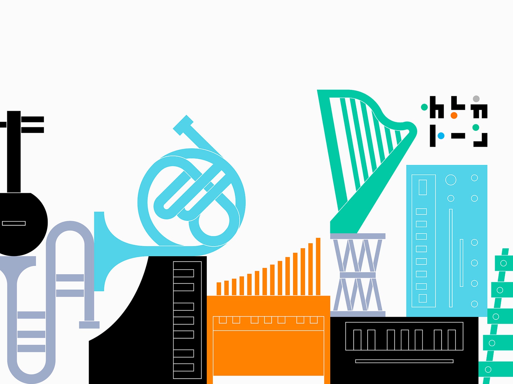 長年Eテレの番組を制作してきた株式会社ディレクションズが、音楽という目に見えないものをいかにビジュアル化して伝えるかを考えてきたノウハウを活用し、楽しく感覚的に音楽を理解できるよう画面構成を工夫しました。