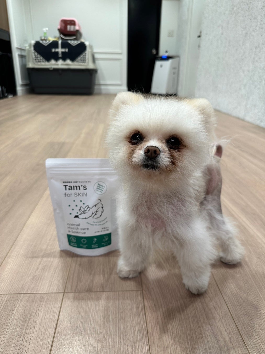 Tam's for SKIN は、ペットの皮膚の健康維持のためのおやつ型サプリメント。