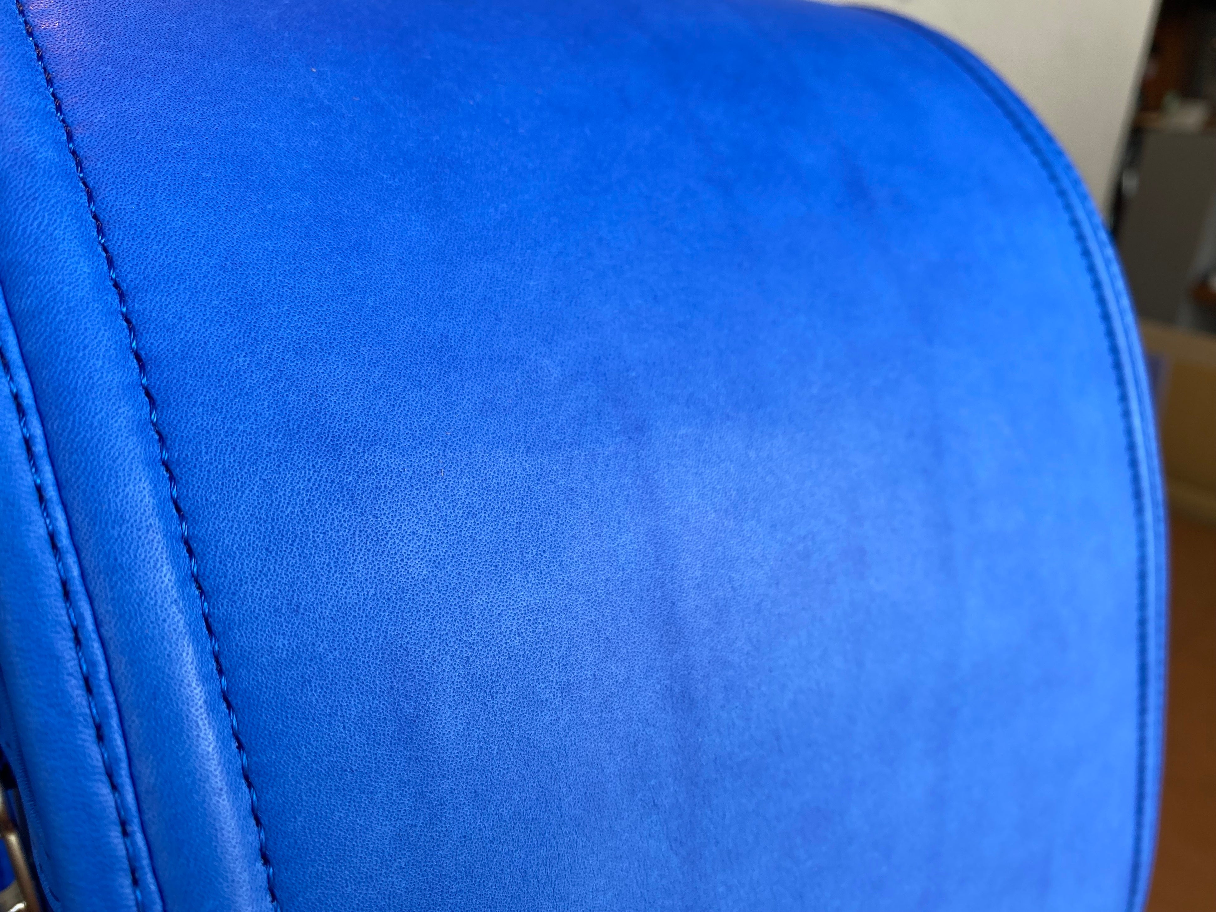 毛足の長い上品な質感と鮮やかなブルーが特徴的な「TSUYU」は、クロム鞣しで、染料で仕上げ、革の風合いを残しつつ、発色よく仕上た皮革 。柔らかく非常に軽く仕上げていることに加え、撥水加工を施しています。