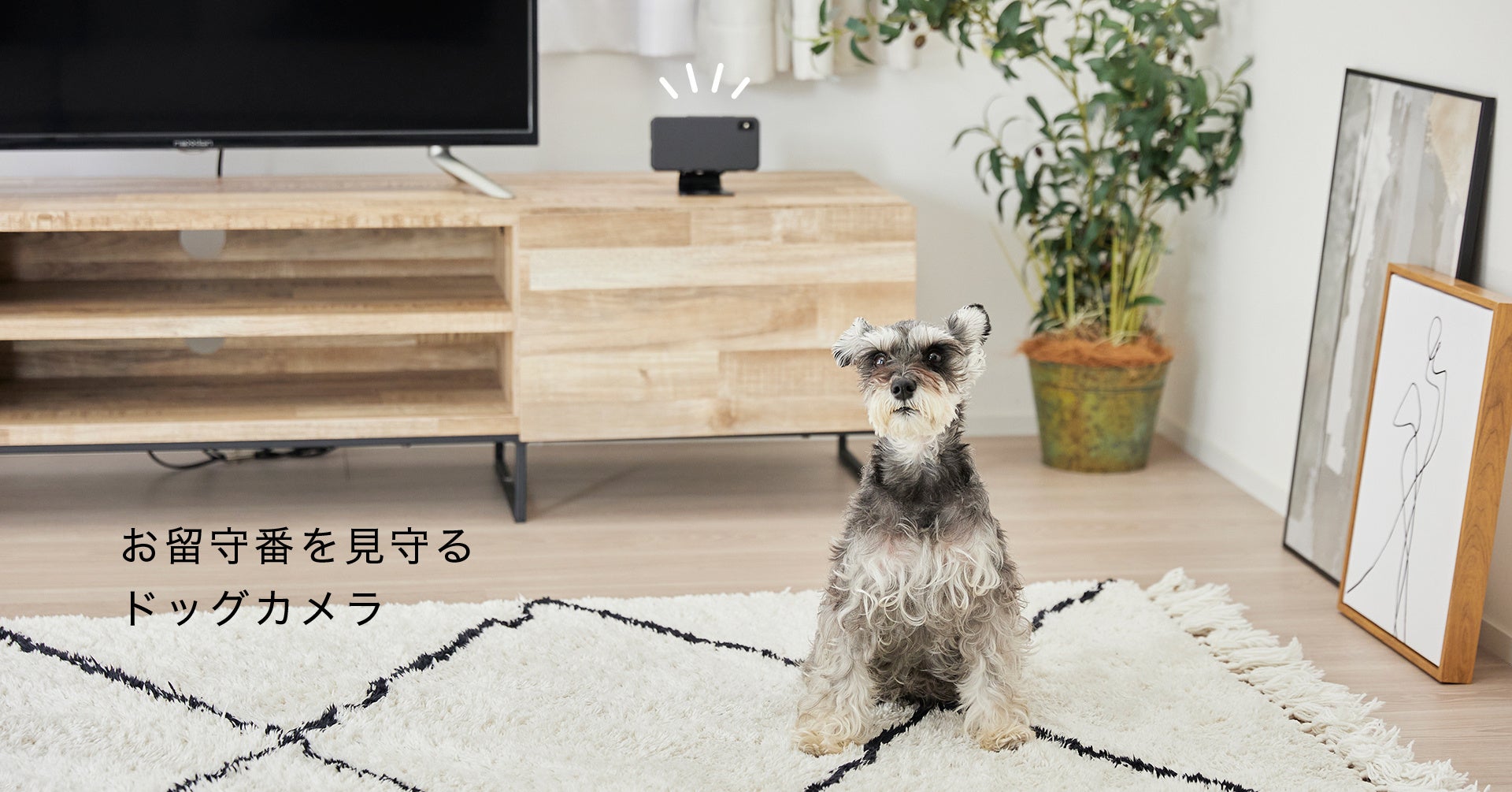 カメラがお留守番中の愛犬の様子をとらえ、1時間に1回「ペット時報」が届く