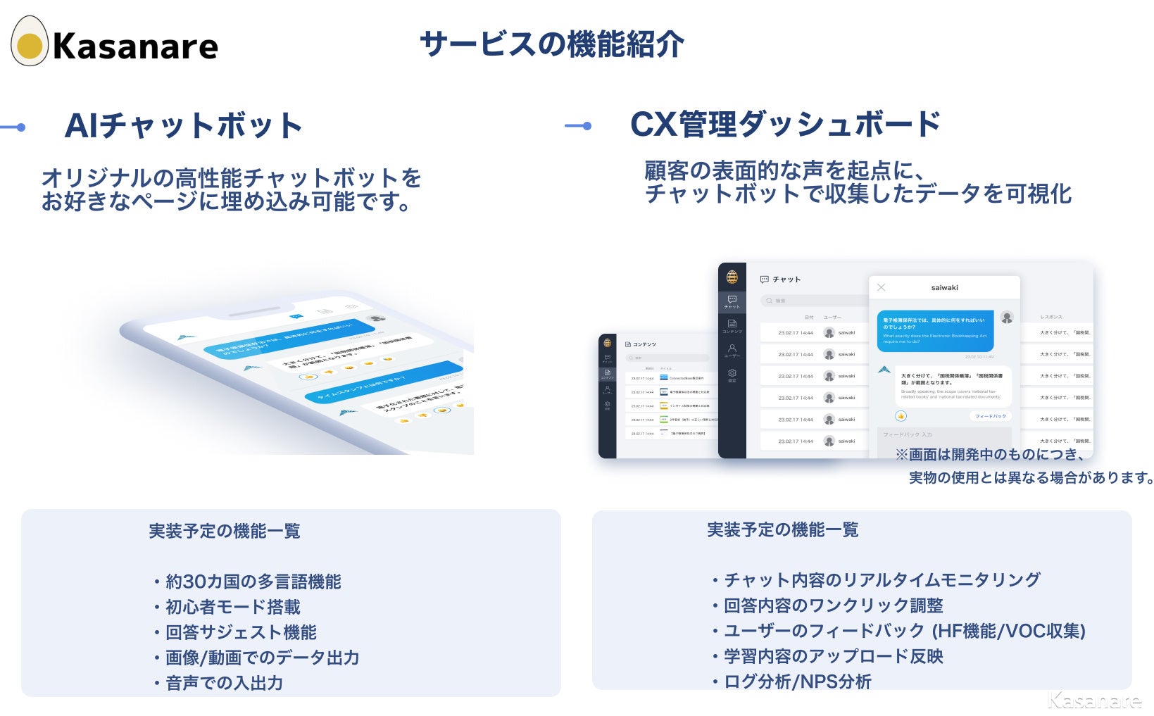 カサナレ株式会社(本社:千葉県木更津市、代表取締役:安田喬一、以下当社)は、2023年4月より一般提供されるAIチャットシステム「Kasanare」の事前受付を開始いたします。