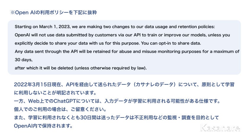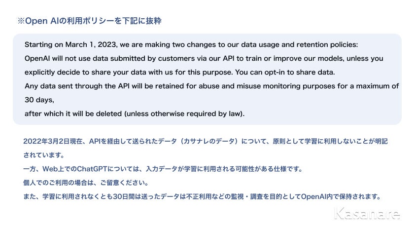 【事前受付開始】GPT-4に対応したAIチャットシステム「Kasanare(カサナレ)」が2023年4月より一般提供を開始します