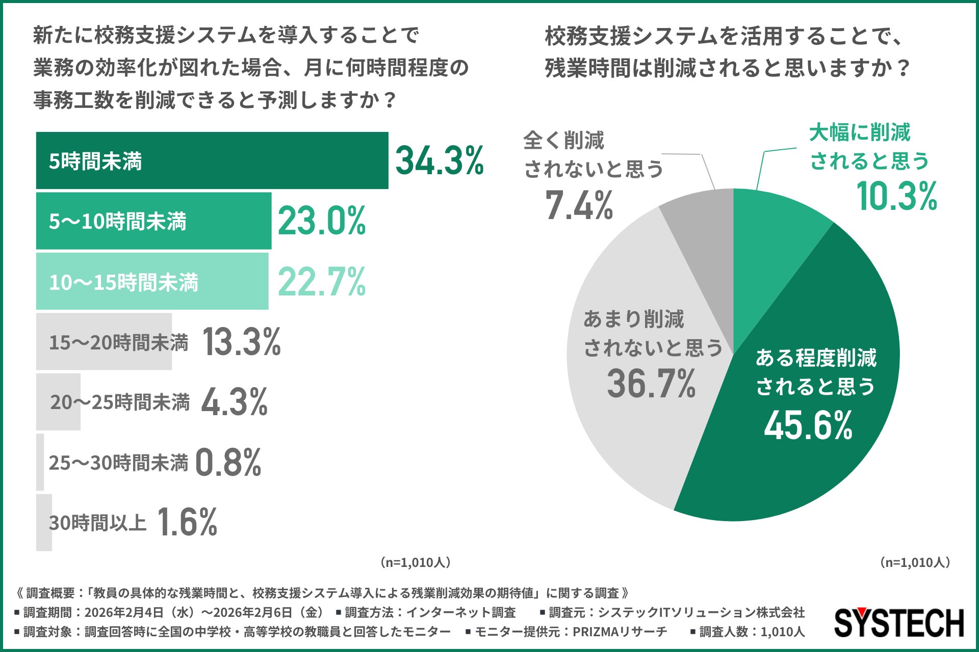 そこで今回、システックITソリューション株式会社(https://www.systech-its.co.jp)は、全国の中学校・高等学校の教職員を対象に、「教員の具体的な残業時間と、校務支援システム導入による残業削減効果の期待値」に関する調査を行いました。