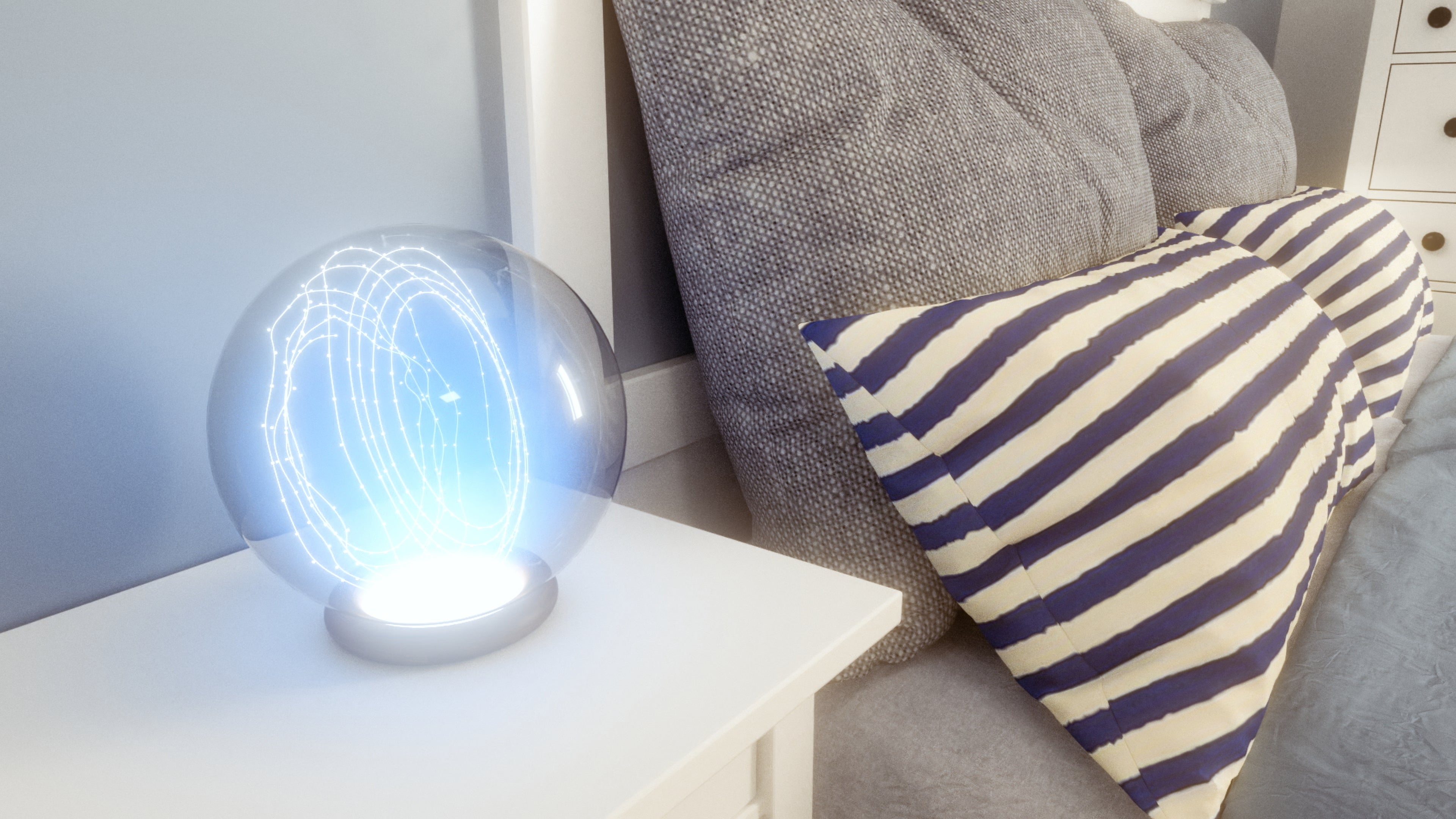 再生する音楽に合わせて”光”が生成され、”光”のインターフェースによって他ユーザーとのコミュケーションも可能なスピーカー。TOMORIの語源は「灯り」です。スマートフォンの誕生以来、他者とのコミュニケーションは画面上のテキストが大半を占めるようになりました。そこに疑問を投げかけ、従来のコミュニケーションに伴っていた、「何かに目が惹きつけられる」「場の雰囲気に呑まれる」といった身体的なコミュニケーションを、情報通信の世界でも取り戻そうという提案です。