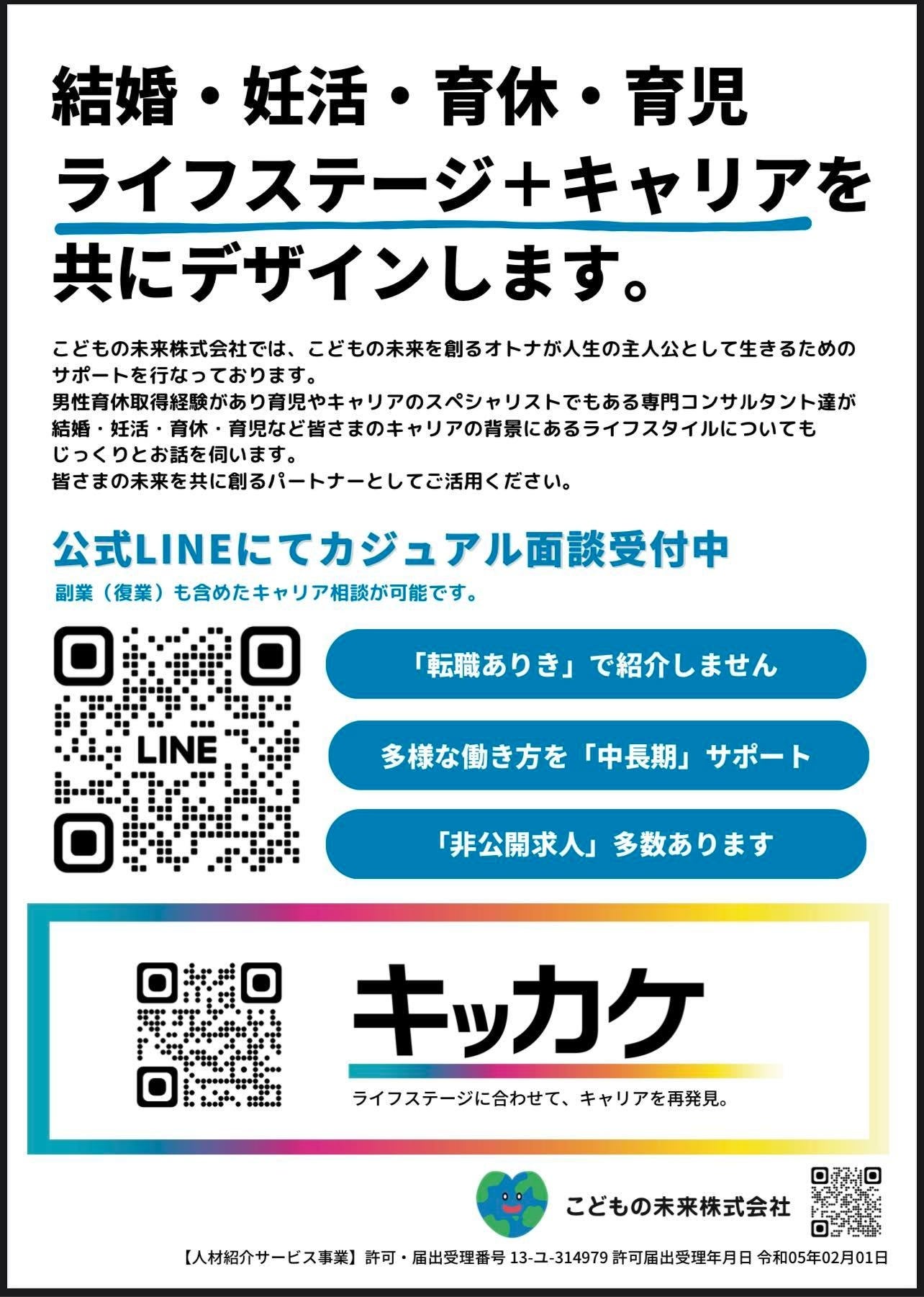 こどもの未来株式会社がライフステージに合わせて、キャリアを再構築するメディア「キッカケ」をリリース。LINE公式アカウントで転職相談・カジュアル面談も受付開始。