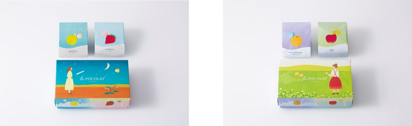 (右)ラ・ポコラのフルーツチョコ 2種類入り(ホワイトリンゴ/ヨーグルト風味河内晩柑)