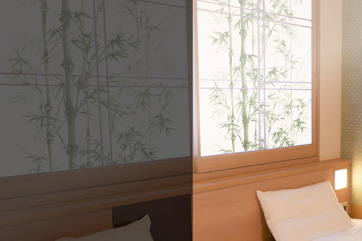 遮光タイプは、完全に真っ暗な状態になる訳ではございません。あくまでも、障子紙の機能の保ちつつ、フィルムを挟んでいますので、光の差し込む度合いによって異なります。
