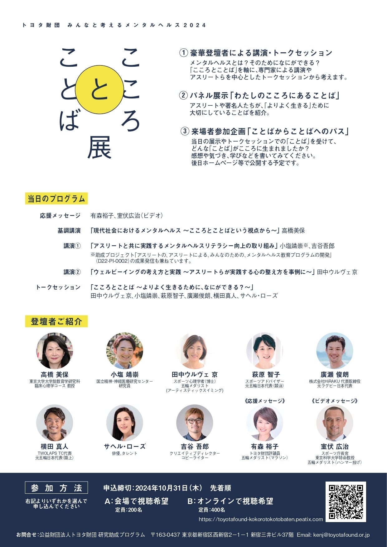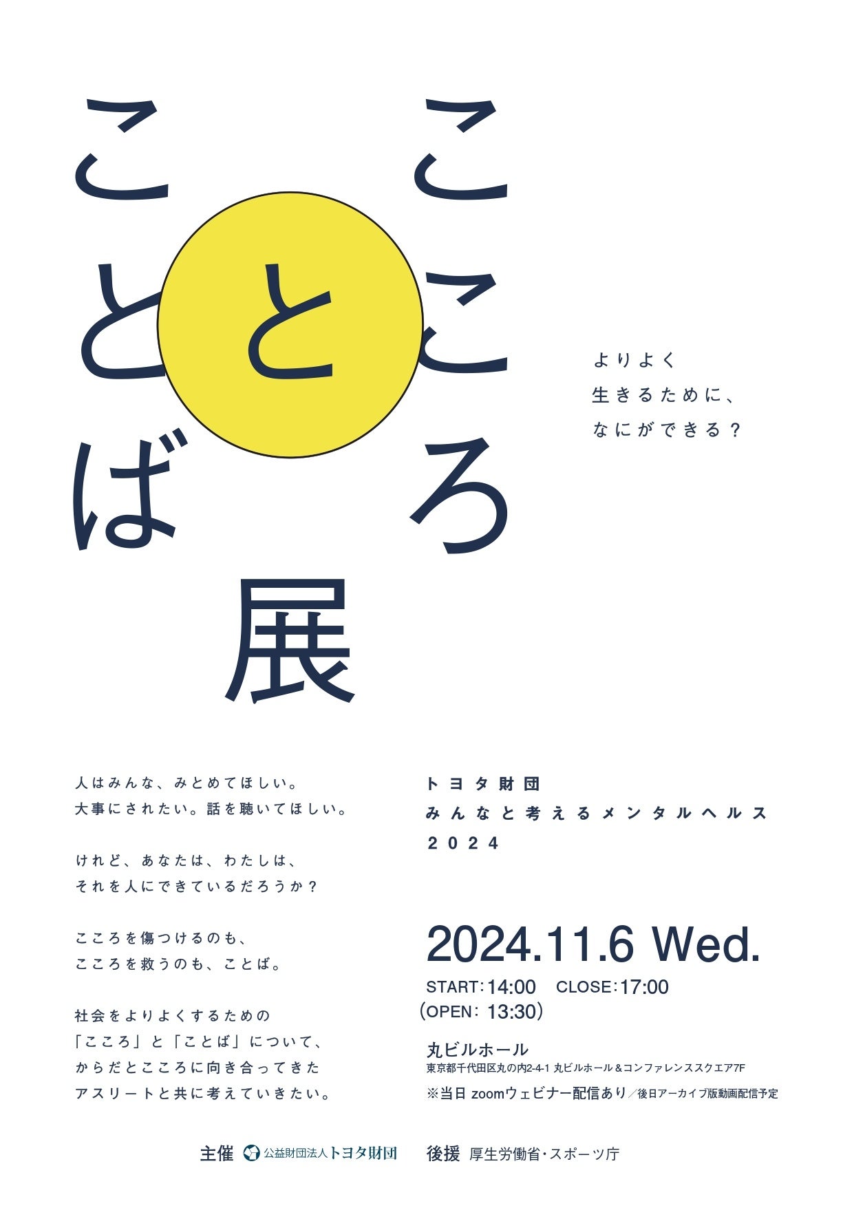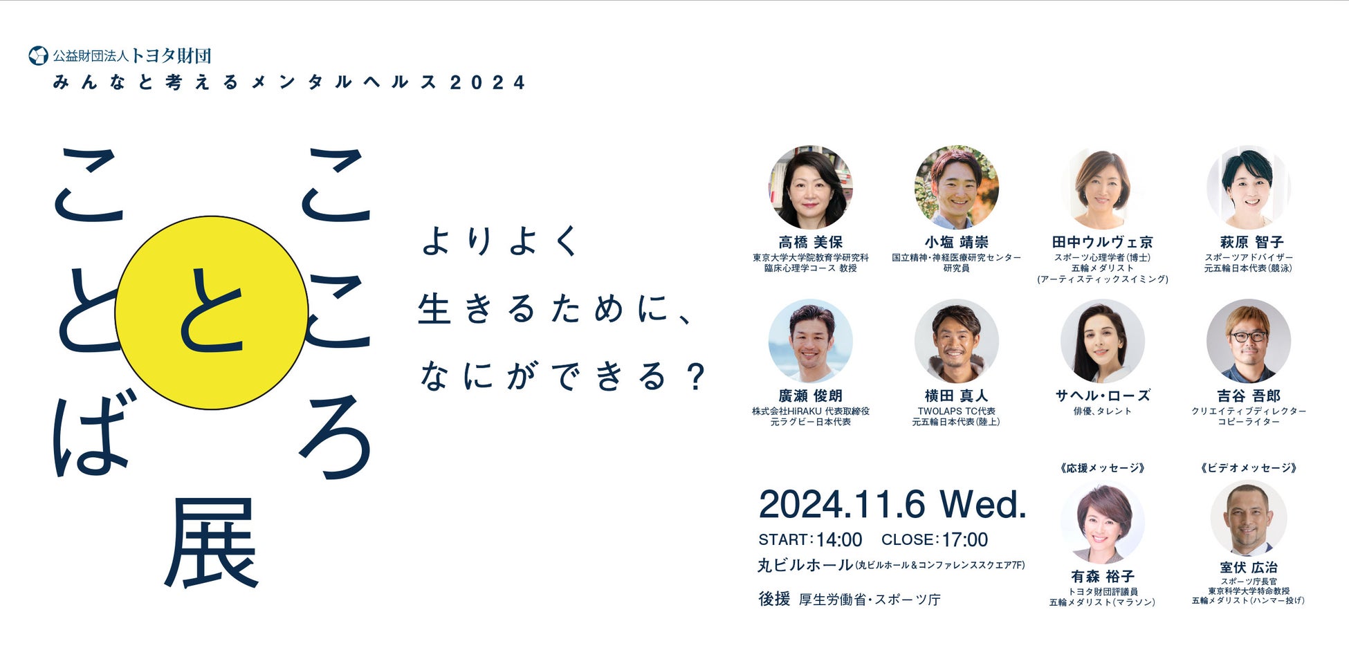 【トヨタ財団】トップアスリートも登壇!みんなと考えるメンタルヘルス2024 『こころとことば展』11月6日開催