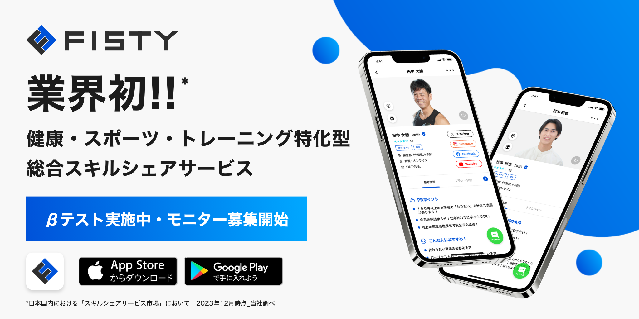 "全国のジムや教室・チームを指導者から比較してダイレクトに繋がれる" 業界初* 健康・スポーツ・トレーニング特化型の総合スキルシェアサービス「FISTY」モニター募集開始
