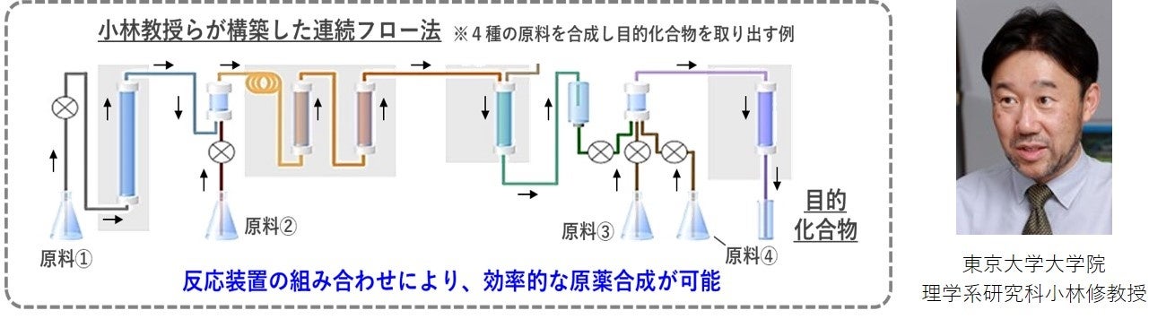 また、本提携を契機に、アクティブファーマが2020年より参画する東京大学 大学院 理学系研究科 小林修教授の有機合成化学研究室(以下 小林研究室)に日本曹達も参画します。触媒に関する世界最高水準の知見を有する小林研究室が推進する『連続フロー法』の社会実装に向け、東京大学・日本曹達・アクティブファーマは密に連携してまいります。