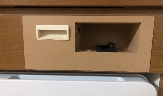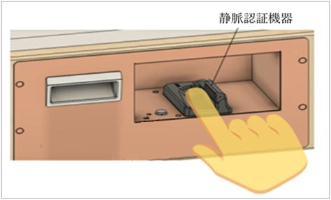 納入された床頭台(本製品) 今回、静脈認証機能を組み入れた引出部分