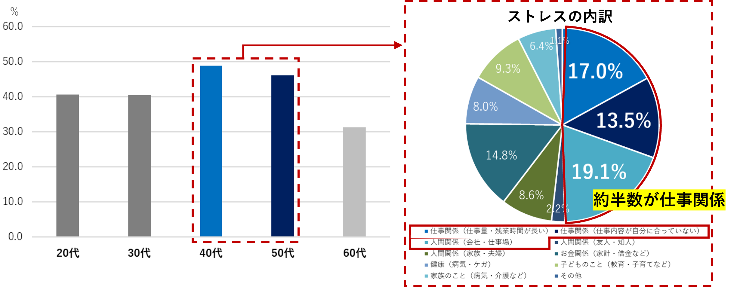 働き盛りの世代別「現在が最もストレスを感じている」人の割合