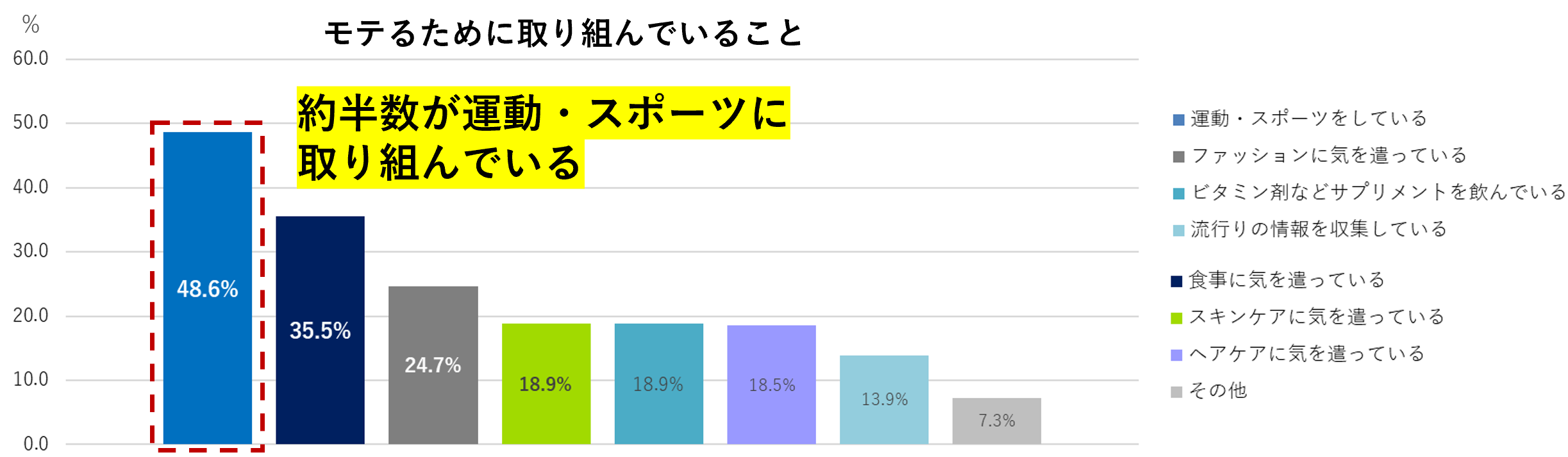 ■約2人に1人が、モテるために「運動・スポーツ」に取り組んでいる。