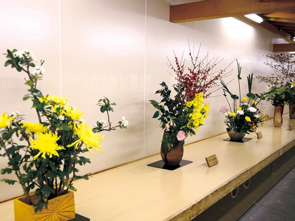 靖國神社献華協會は、池坊や草月流、小原流といったさまざまな流派の会員からなり「いけばな」を奉納する活動を行っています。新年特別献華展は拝殿前華席にて催されます。