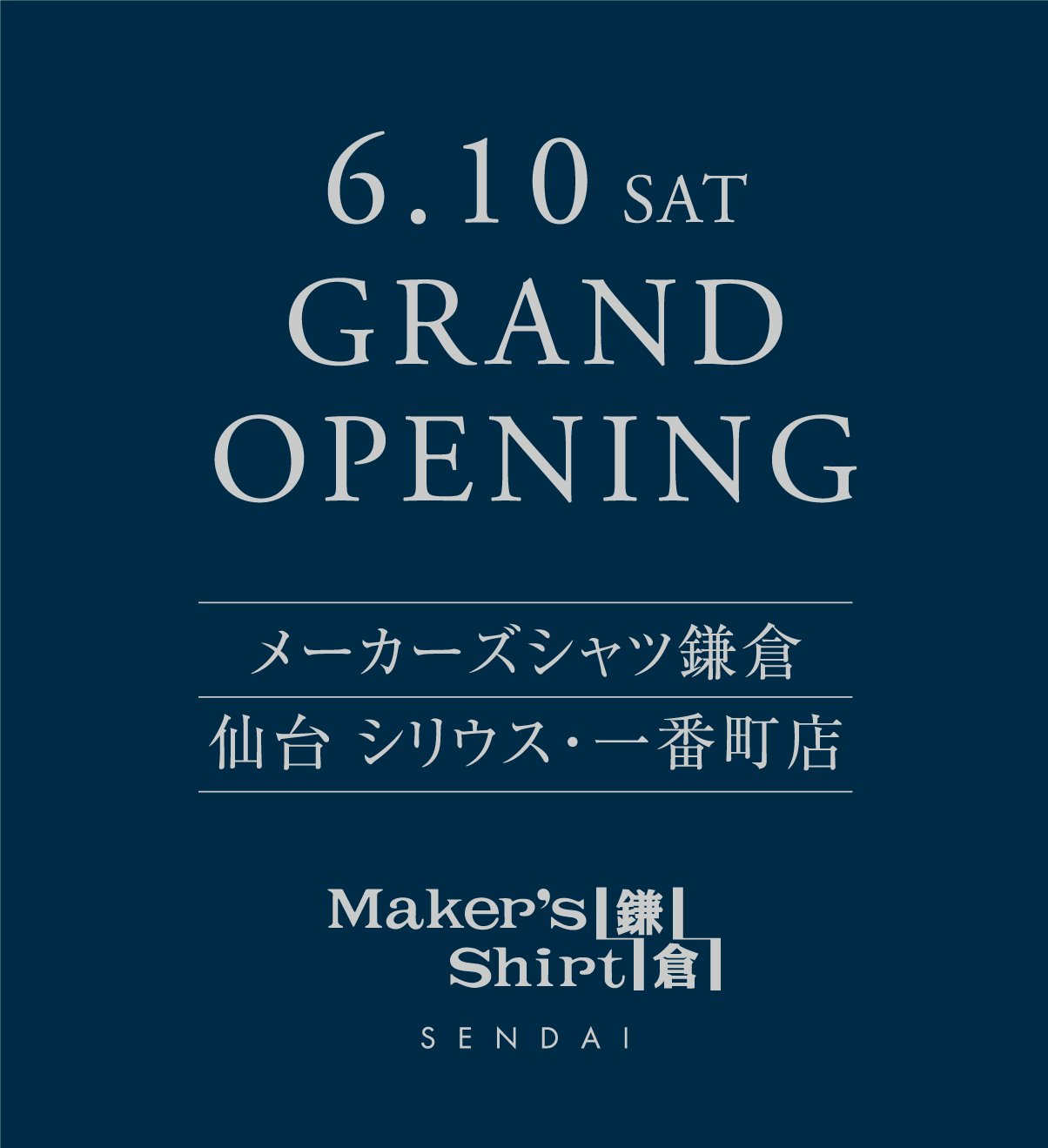 直営店舗としては遂に東北初出店!メーカーズシャツ鎌倉の仙台店が、弊社が運営サポート及びリーシングを担当している仙台の商業施設「シリウス・一番町」にて、6月10日(土曜)11時からオープンいたします。