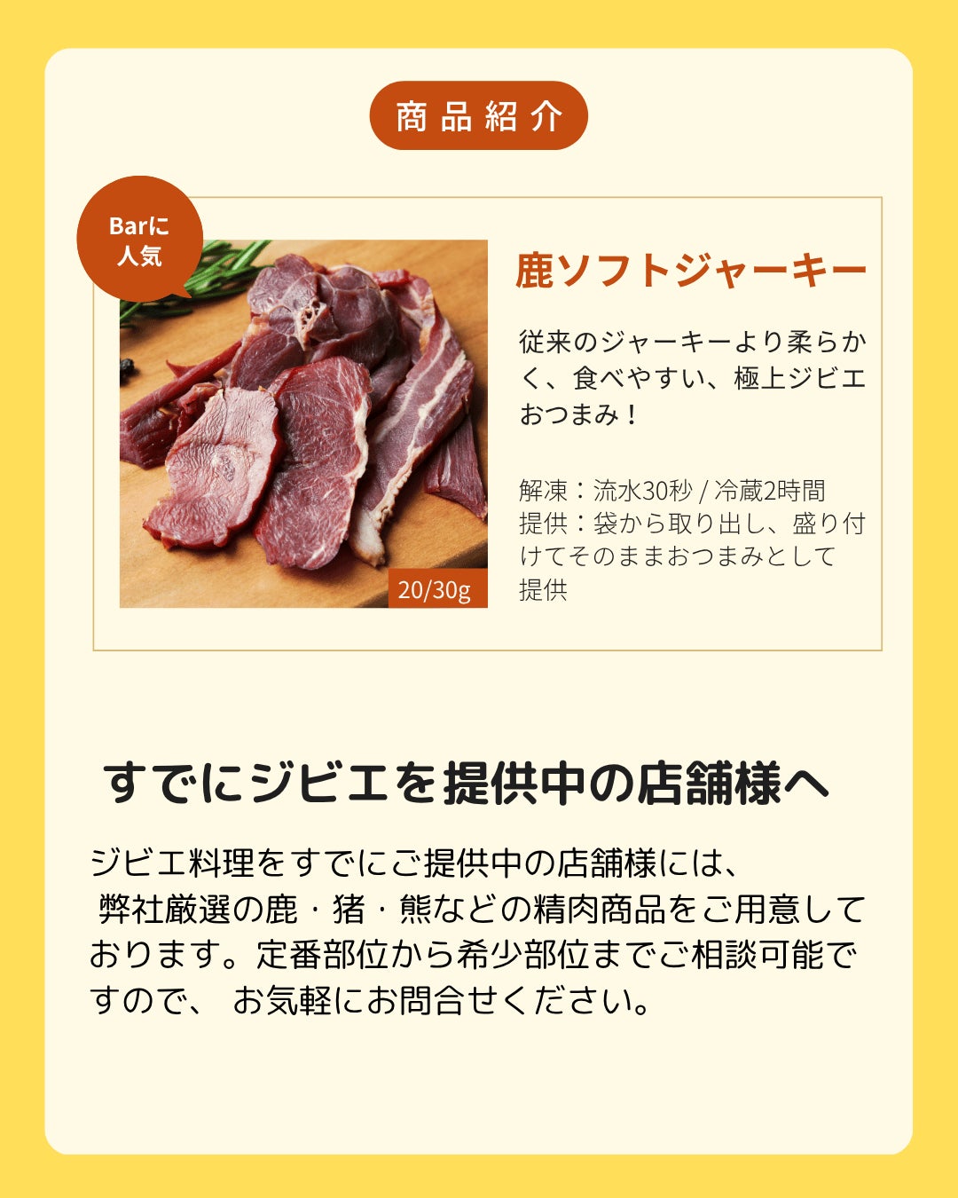これまでジビエを扱ったことのない「飲食店」、食べたことのない「一般消費者」でも気軽にその一歩を踏み出してもらえるよう、参加店舗にはハンバーグやソーセージなど手軽な加工品にして提供。無償PRツールを配布して、集客イベントとして地域を盛り上げていきます。
