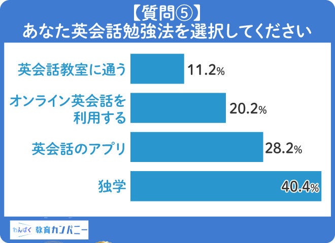 【質問⑤】英会話の勉強方法は「独学」と答える人が40.4%と大部分を占める