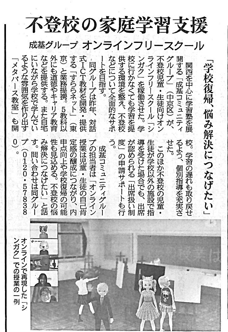 5月に開校したオンラインフリースクール「SHINGAKU」。生徒の自宅学習が、学校の出席扱いとして認められています。