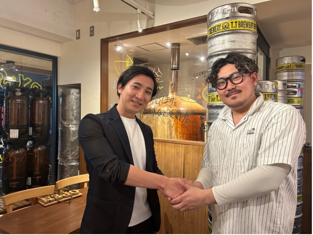 <画像:左:当社代表中川、右: T.T BREWERYオーナー寺田氏>