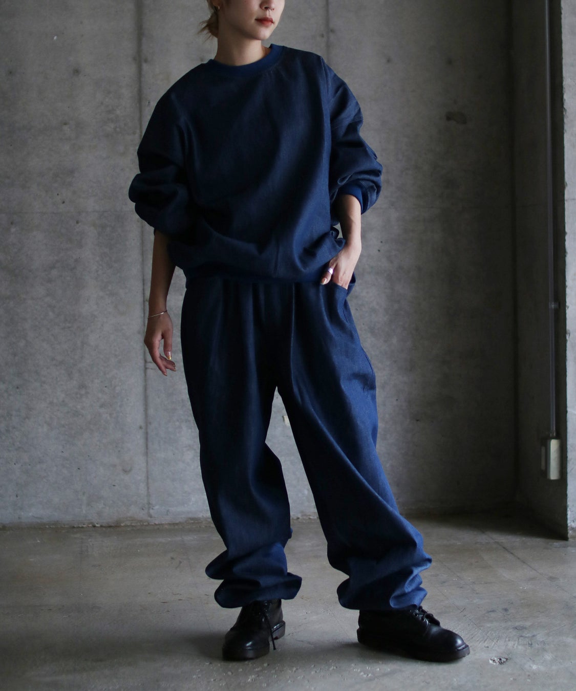 第一弾となる今回は、スウェット素材のセットアップ3色と、同型のデニム素材のセットアップを発売。ワンサイズ展開で、ユニセックスで着用可能な仕上がりとなっている。