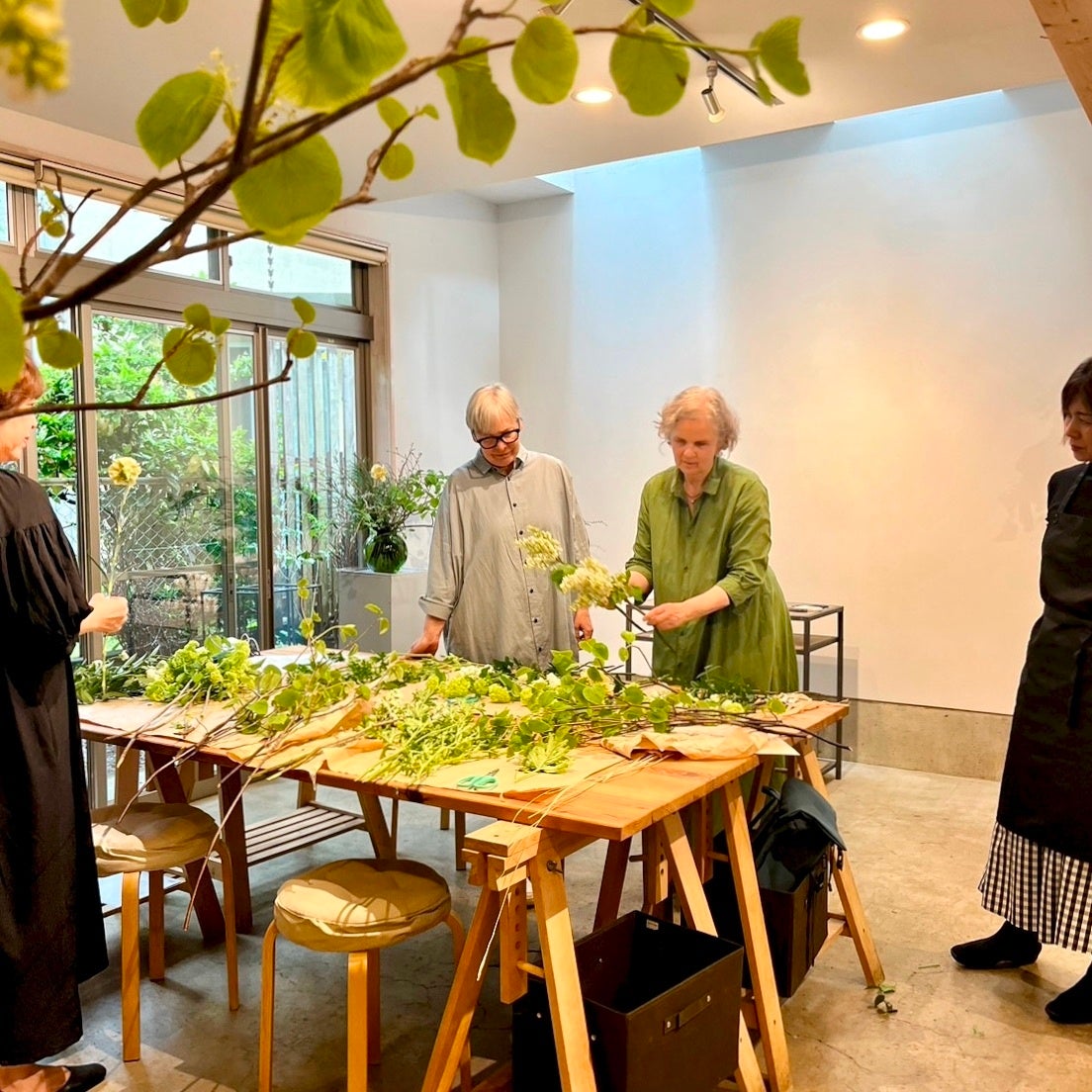 講師のガブリエレ先生と、建築家の彦根アンドレアさんがコラボし、古民家宿コロクにある植物や湘南から持ってきたお花を使い、お花と対話をしながらフォレストブーケを作ります。