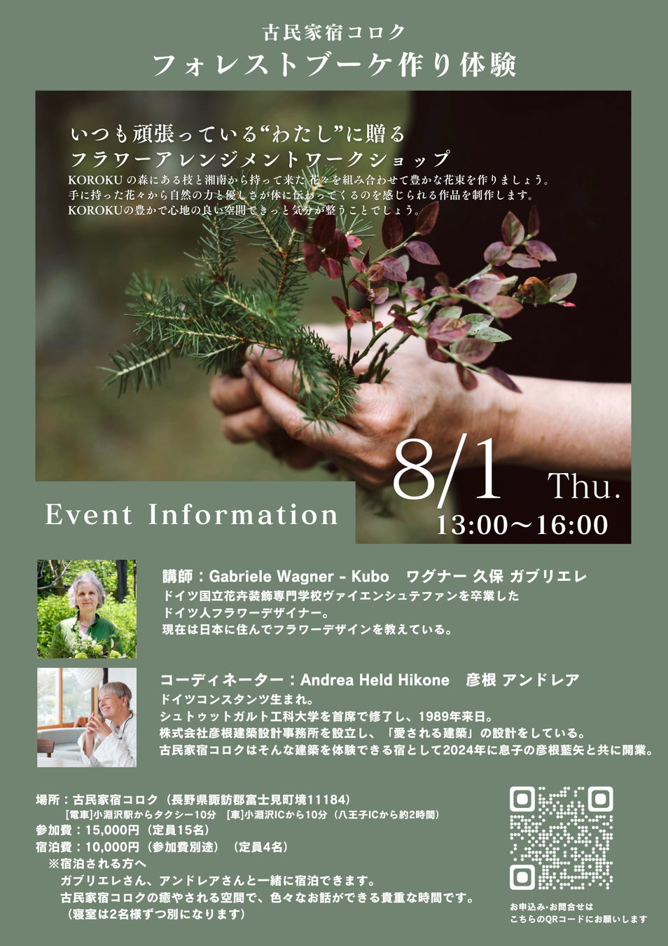 フォレストブーケ作り体験! in 古民家宿コロク - ガブリエレワグナーさんを講師に迎え、8月1日(木)に開催