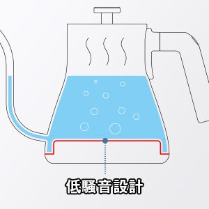 HAGOOGIドリップポットは、独自のポット底部を下降させる構造により、沸騰中に発生する騒音を効果的に抑えています。さらに、設定温度に近づくとともに、電源プレートが自動的に1000Wから800Wに切り替わり、徐々に温度を上げるように調整するため、沸騰時の騒音をさらに軽減する効果があります。静かな環境・癒しの空間に騒音で邪魔される心配はありません。