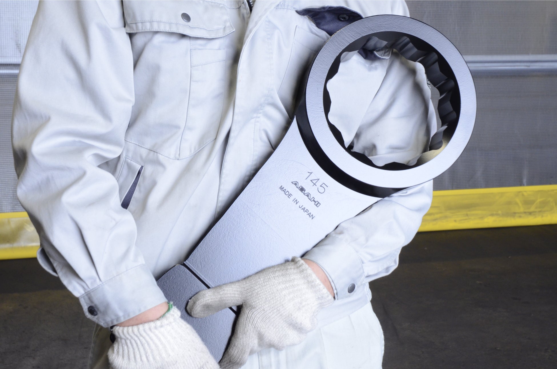 弊社はハンドツールだけでなく、このような巨大工具も製造しております。巨大工具は船舶・発電所・橋梁の工事等に使用されています。このサイズの工具を製造しているのは国内を探しても弊社だけとなっています。