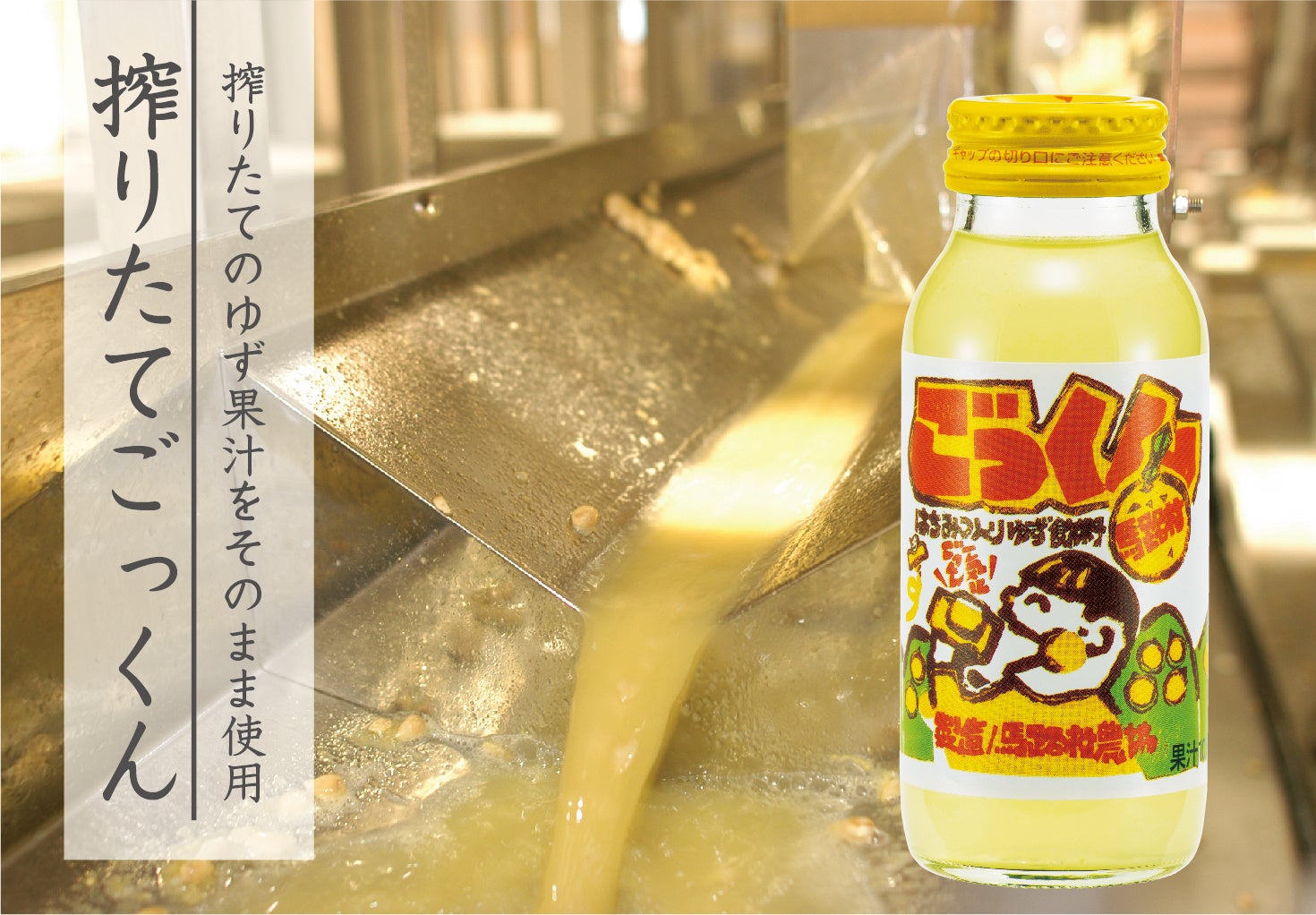 一方、搾りたてごっくんは、ゆず果汁を冷凍せずに、そのままゆずの森加工場に持ち込み、ごっくん馬路村にしました。