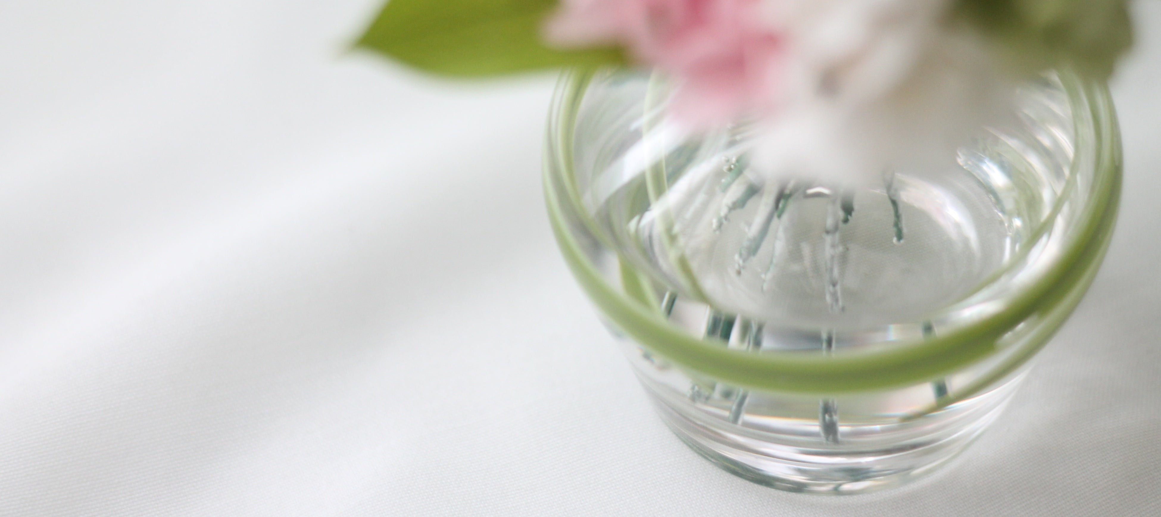 ガラスの器に入れると光を反射し、本当にお水が入っているようでお花の美しさを一層際立てせてくれます。