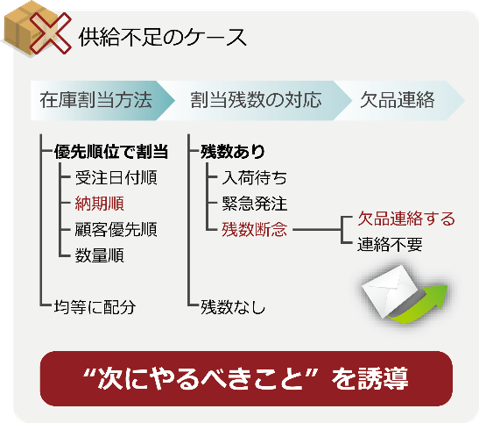 時点で通知し、優先順位に従い入荷待ち受注案件を自動で割り当てる「待機手配」を機能強化